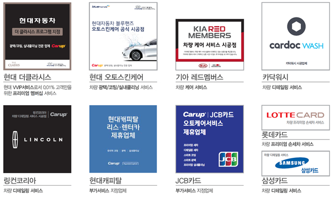• 금융업계, 완성차업계의 VVIP 고객 대상 동 서비스를 수년간 전담한 Carup은 그 시공 능력과 상품성을 인정 받고 있습니다.